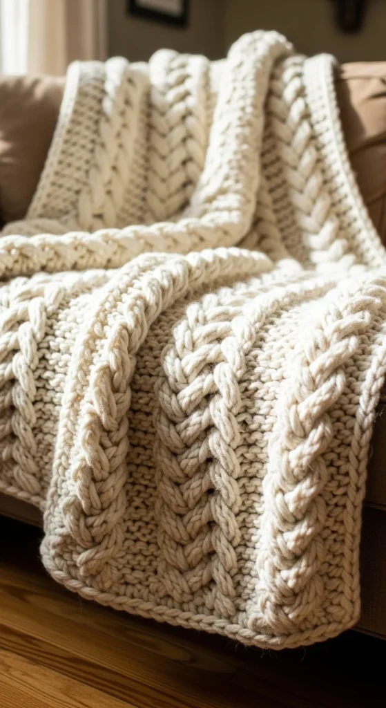 Cable textures create raised lines across the fabric. These lines trap warmth and make the blanket feel plush. Neutral shades like cream, oatmeal, or soft gray highlight the texture best.