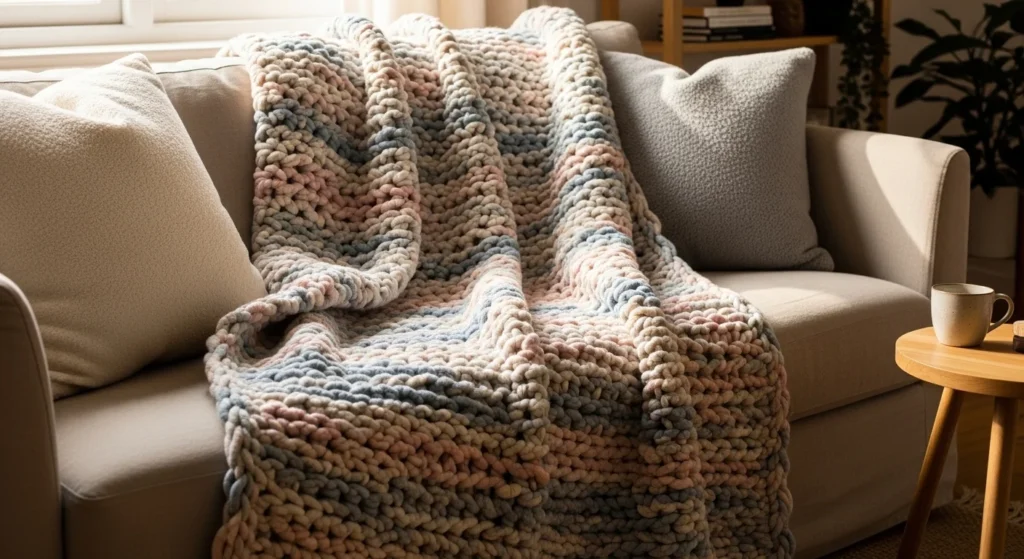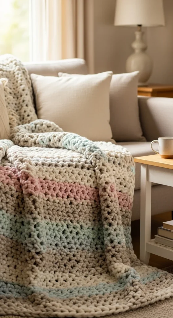 Budget idea: use acrylic yarn for large blankets. It stays affordable and durable.