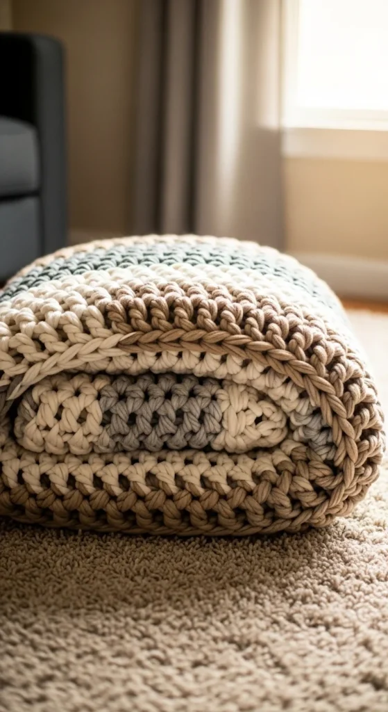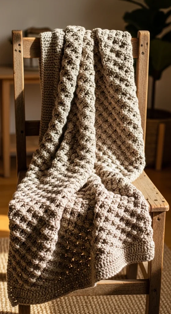 Chunky cable crochet blankets look detailed but are easier than they appear. Thick yarn does most of the work.