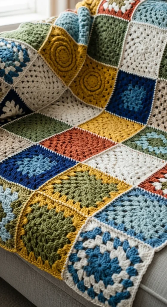Granny squares remain one of the most loved crochet blanket styles. They are simple, colorful, and flexible.