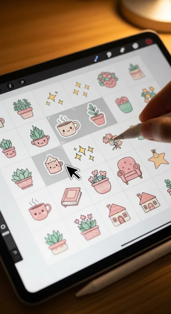 If you’re designing for journals or laptops, try mixing themes like plants, books, coffee cups, and stars to create a cohesive aesthetic set.