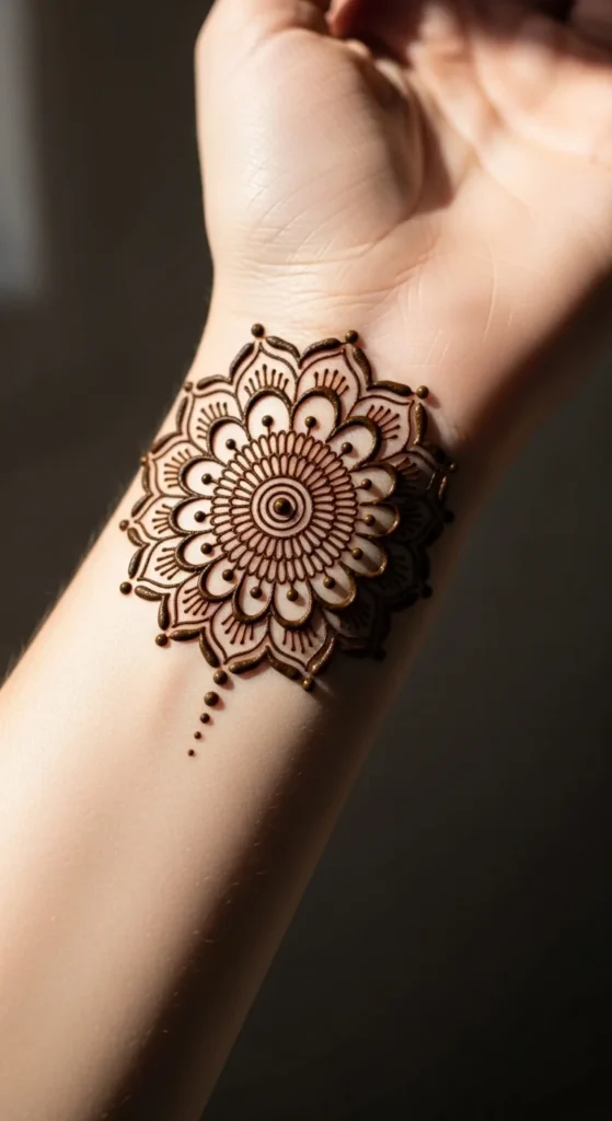 A small mandala near the wrist looks elegant and balanced.