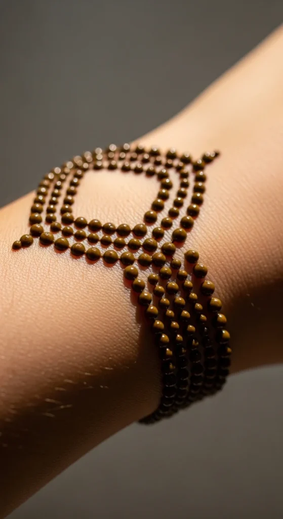 A bracelet made from tiny dots creates a soft decorative look.