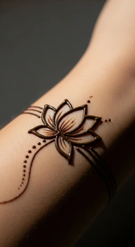 A small lotus flower adds meaning and beauty to minimal mehndi.
