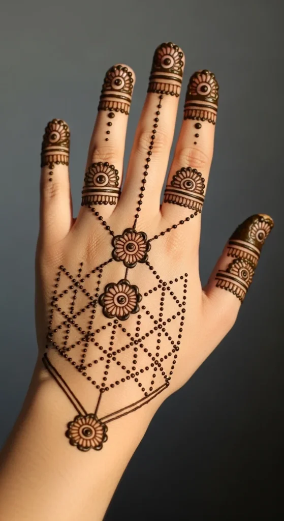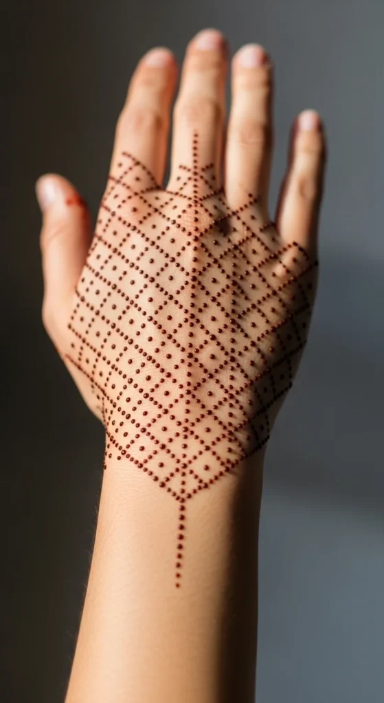 Dot grids are one of the easiest mehndi styles. They require patience more than drawing skill.